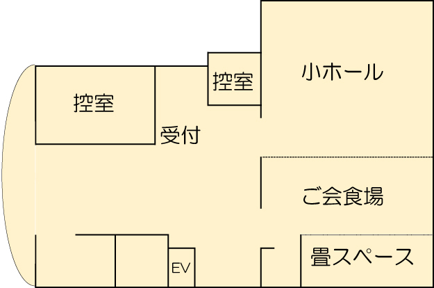 3F式場は小ホール、ご会食場、小上がりの畳スペースがございます。